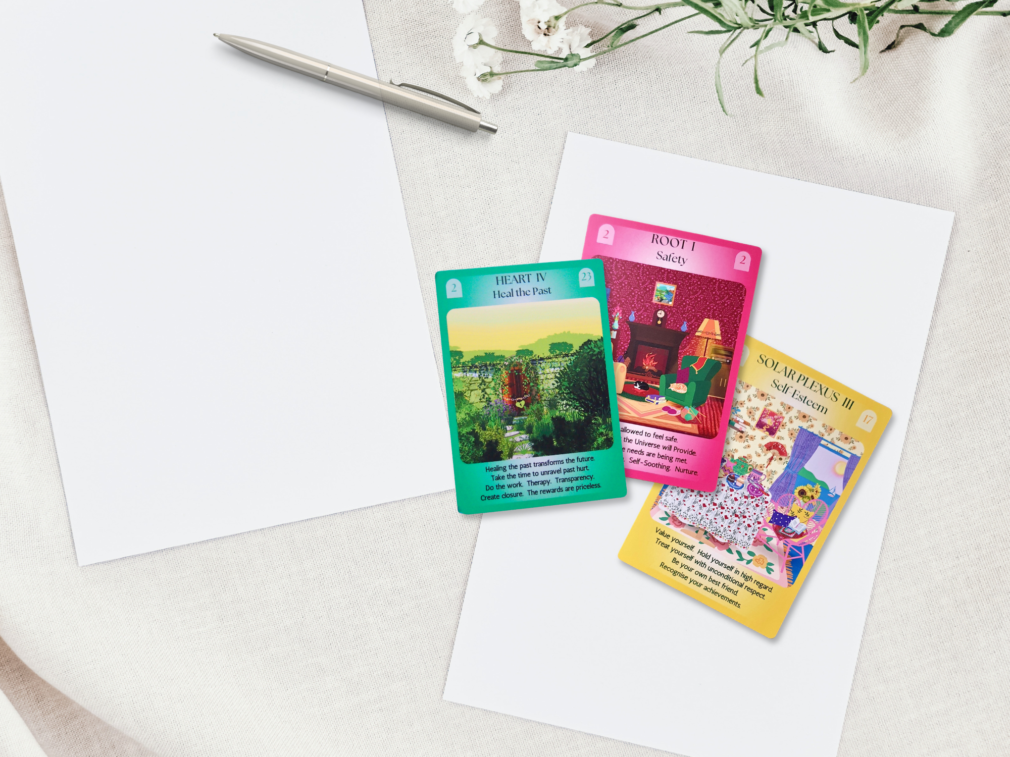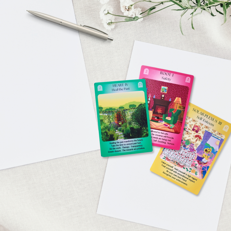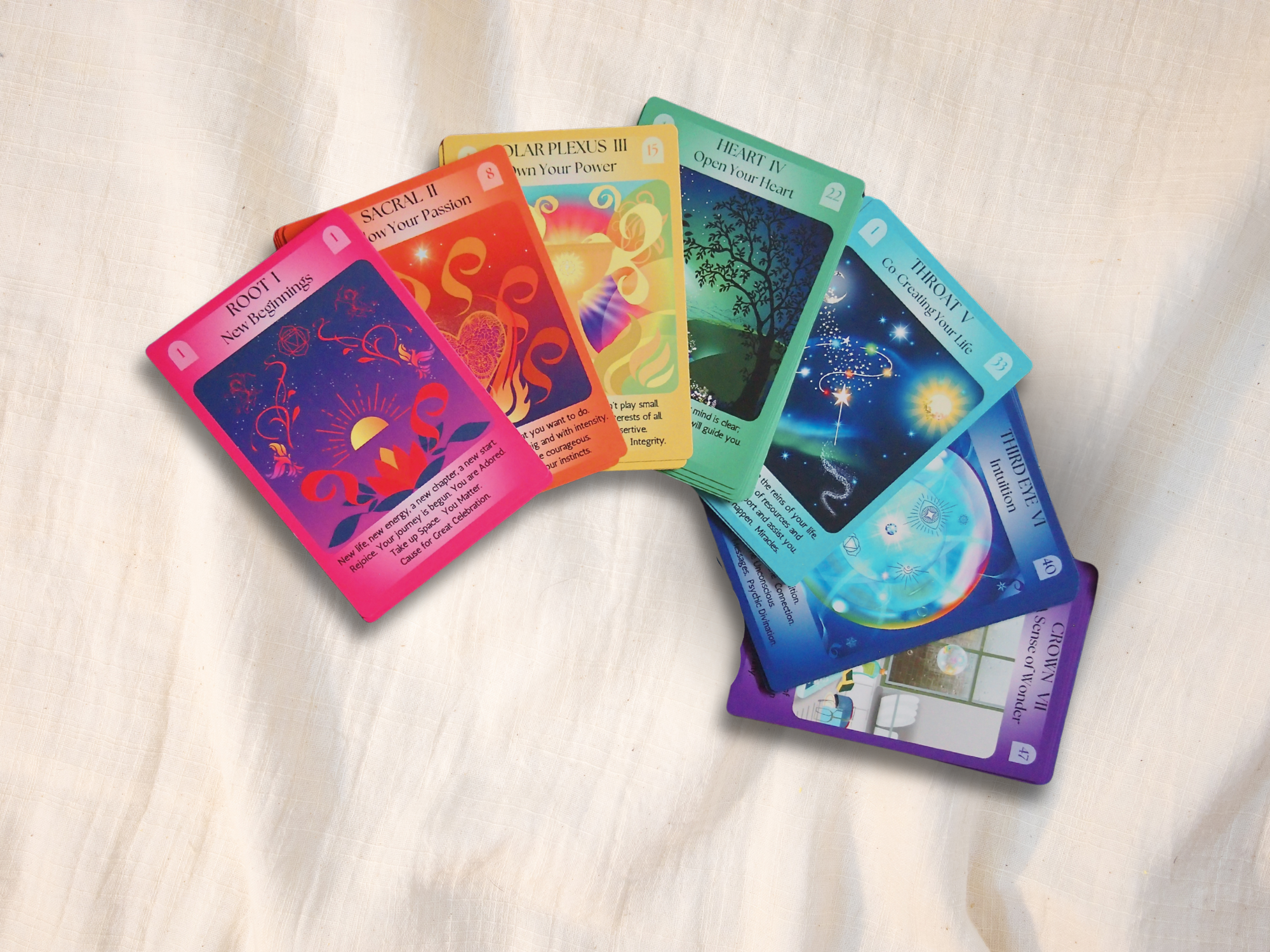 What makes the Chakra Oracle special is the balance it holds between the practical and the soulful. I wanted it to be tactile and inspiring — something you’d enjoy using — while also being clear and easy to understand, so it never feels overwhelming. Each card offers a gentle nudge, helping you notice what might be hidden, release old patterns, and discover fresh perspectives. My hope is that it feels like a supportive companion: grounding, encouraging, and quietly transformative.