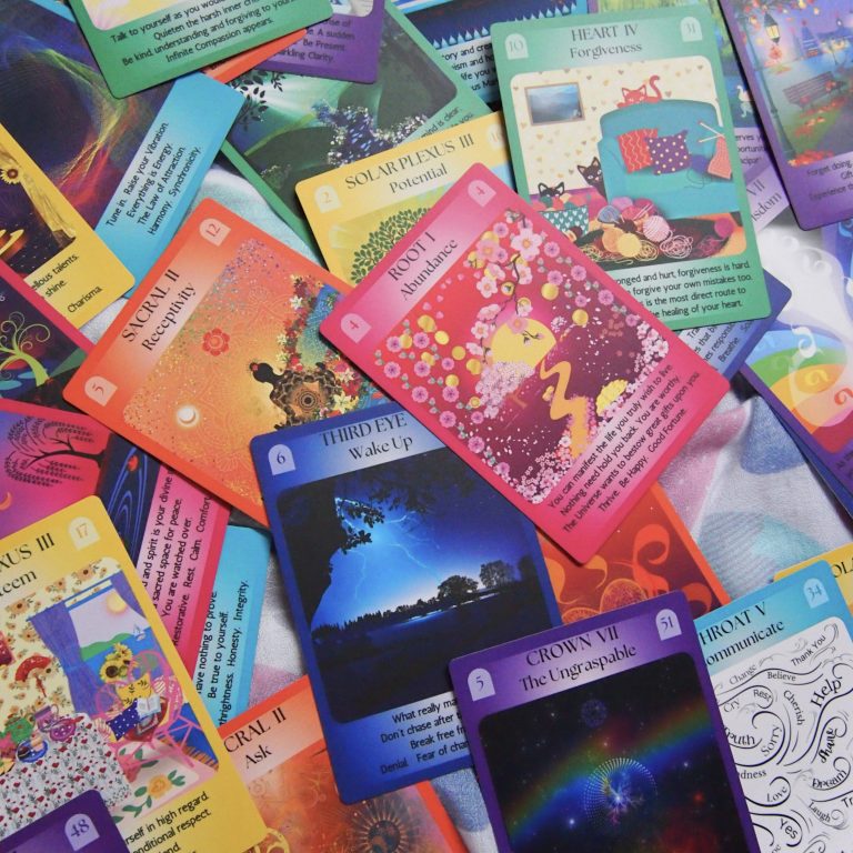 The Chakra Oracle was born from my own healing journey and the many years I’ve spent exploring personal growth, mindfulness, and emotional wellbeing. For a long time, I felt there was a missing piece — a way to bring all the insights and practices I’d gathered into something tangible, something you could hold in your hands and return to whenever you needed.