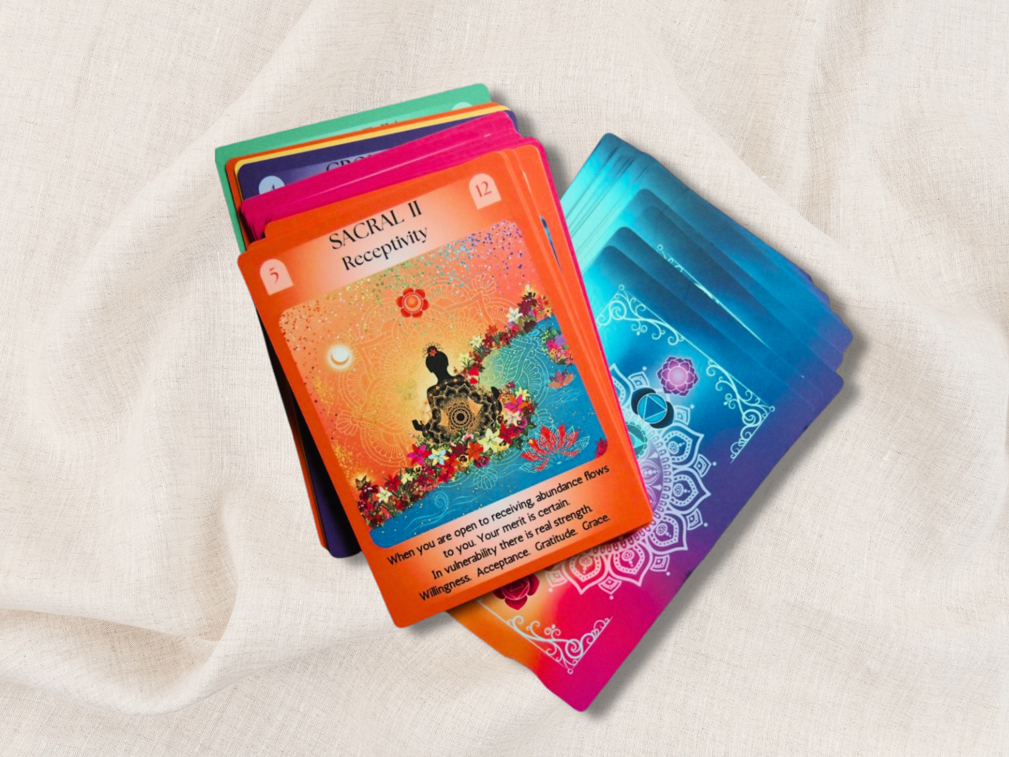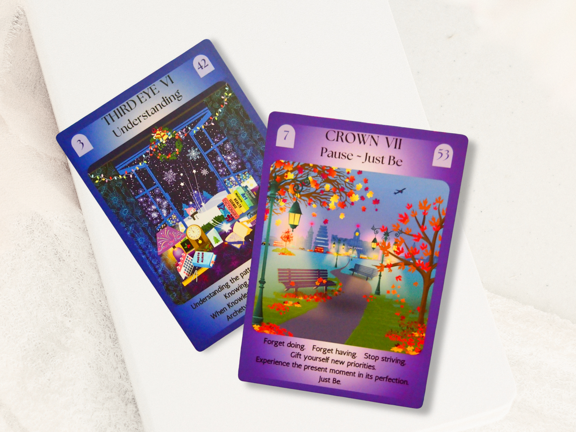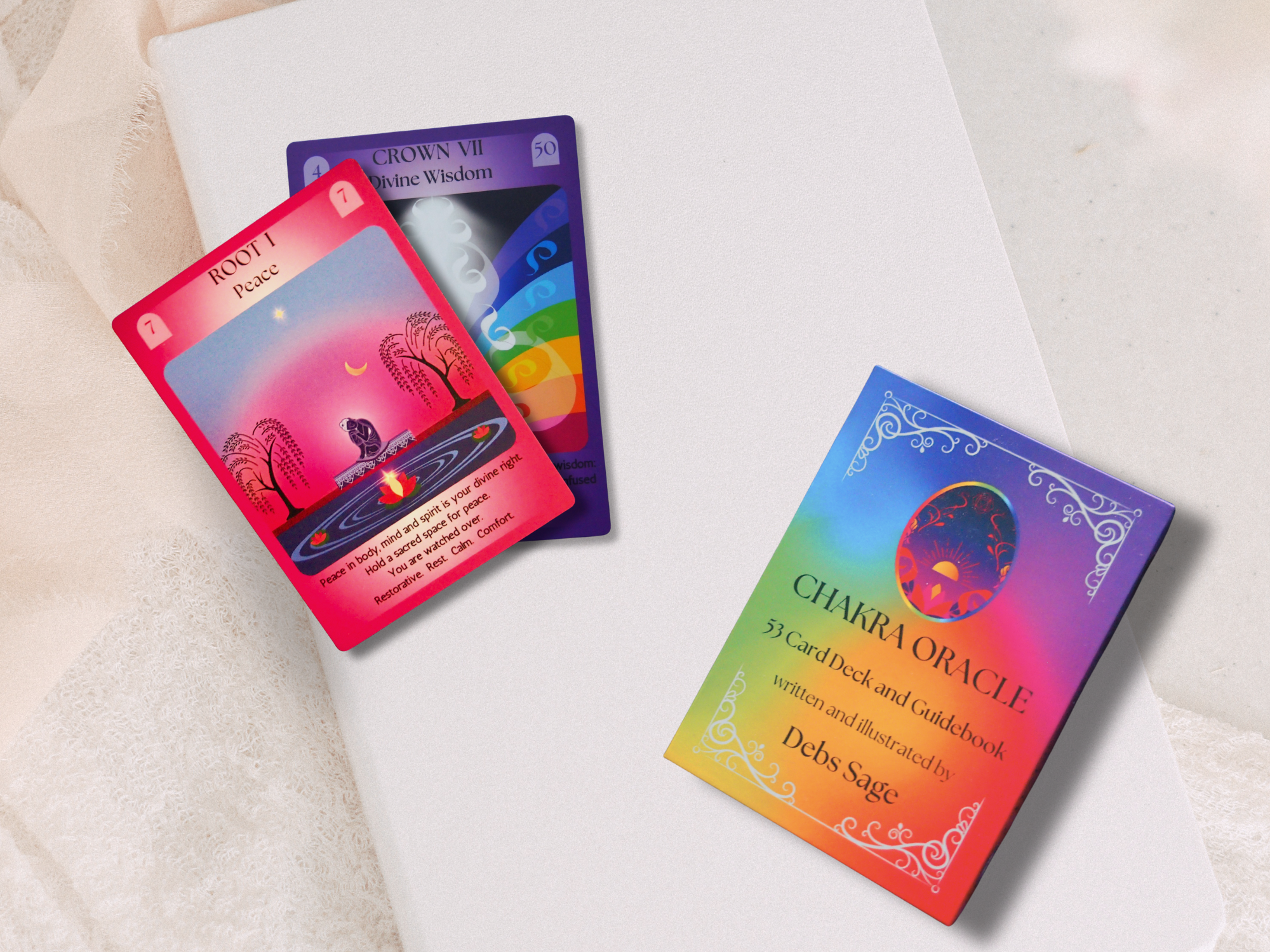 This illustrated chakra oracle card deck is designed as a gentle mindfulness tool for self reflection, emotional healing, and everyday clarity — a thoughtful tarot alternative and meaningful gift .